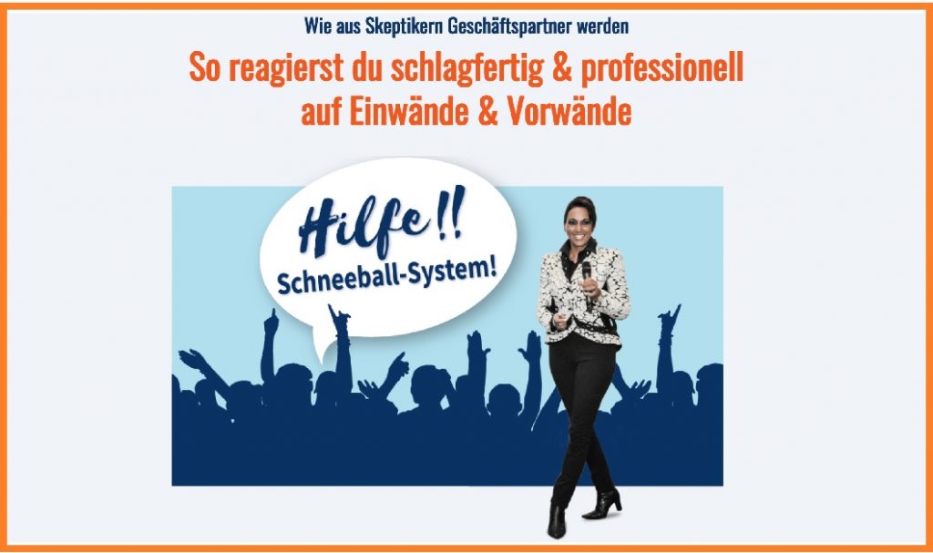 Abschluss: Wenn du dich immer wieder von Einwänden und Vorwänden entmutigen lässt, dann wird es Zeit, etwas zu ändern. Mit „HILFE!! SCHNEEBALLSYSTEM!“ hast du das Werkzeug in der Hand, um schlagfertig und professionell auf skeptische Stimmen zu reagieren. Hol dir jetzt deinen Leitfaden zur professionellen Einwandbehandlung im Network-Marketing und starte noch heute deine Reise zum Erfolg!